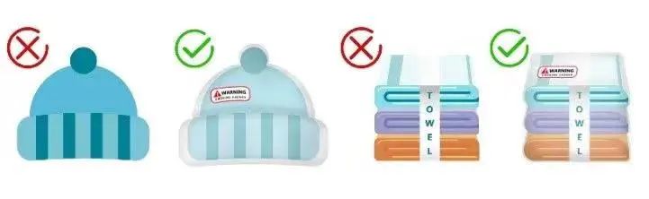 紡織品需密封塑料袋,并有窒息警告標(biāo)簽。