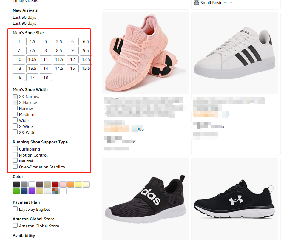 例如,在搜索結果頁面的左側,亞馬遜提供了更細分的搜索選項。在填寫選擇屬性后,產品可能會因為這個搜索選項而帶來更多的流量。