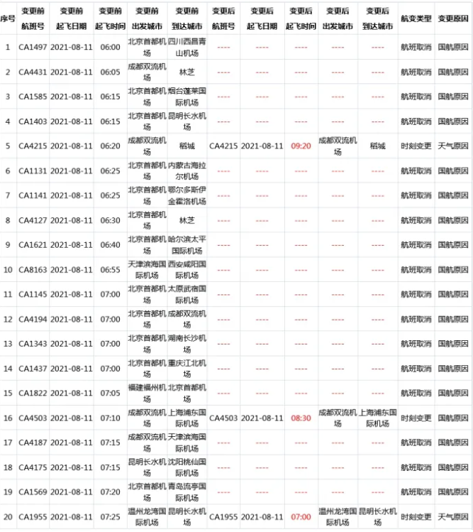 我們查看了中國航空方面的情況。以中國國際航空公司為例,僅8月11日一天,就有477個原計劃當天起飛的航班被取消!